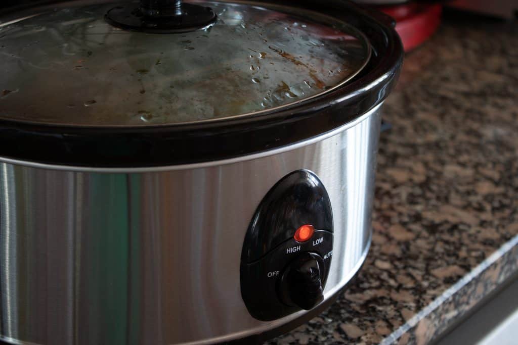 Cover the slow cooker with the lid and turn it on high to cook 5-6 hours and on low to cook 8-9 hours.